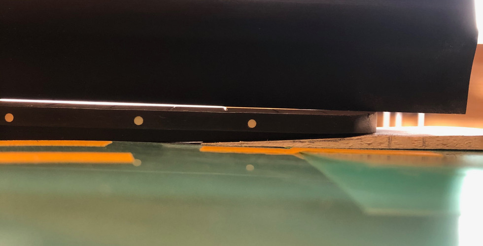 After sanding, the neck was completely flat with the correct radius, and we created some fallaway on the extension. You can see the light poking through.
