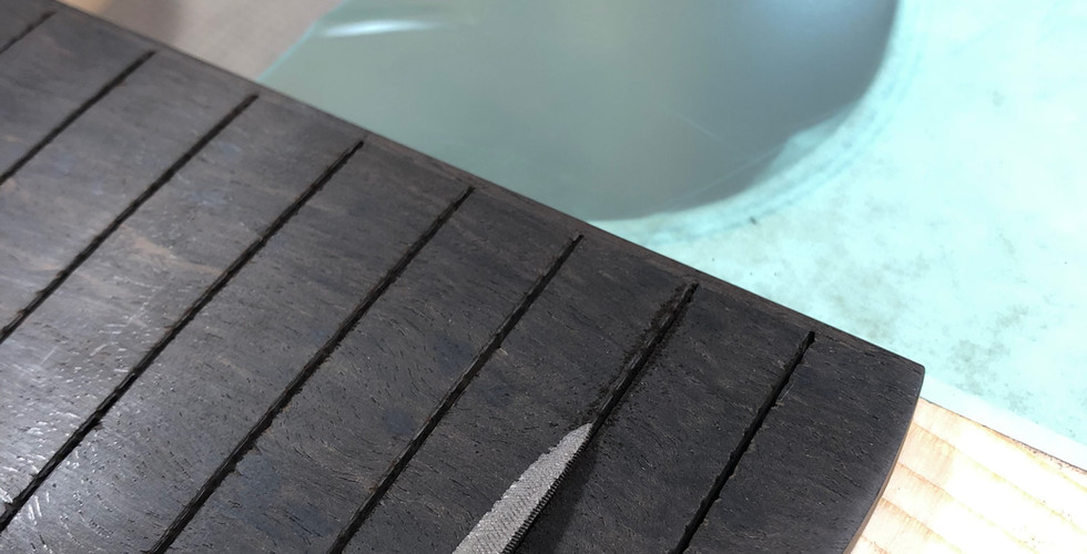 Next step: prepping the new frets.
